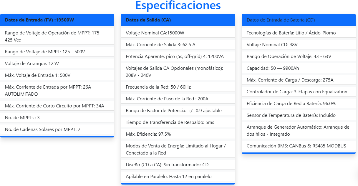 Inversor Hibrido Interactivo para Interconexión a la Red Eléctrica de CFE de 11.6 kW con Salida de 220 Vca.