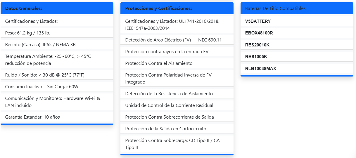 Inversor Hibrido para Interconexión a CFE de 8 kW con Salida de 220 Vca.