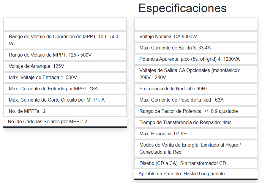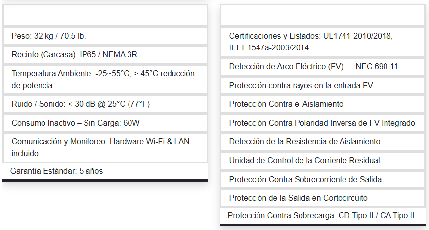 -Alto Rendimiento: Eficiencia de hasta 97.8%, doble MPPT para distintas orientaciones y amplio rango de voltaje para mayor producción de energía.